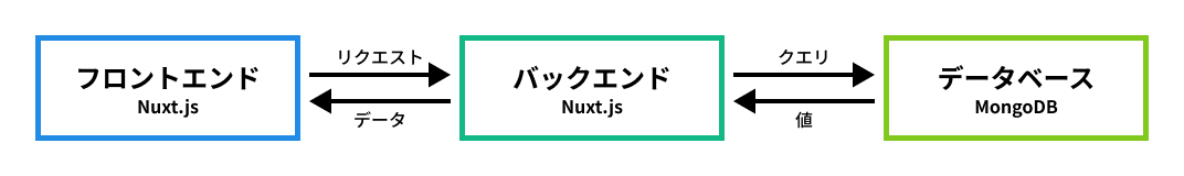 定期的にデータベース (MongoDB) にデータを保存して、フロント (Nuxt.js) からのリクエストが来た時にそこから値を読み出すようなアプリを作っていました。Nuxt.jsはフルスタックフレームワークなので、バックエンドもNuxt.jsで書いていました。