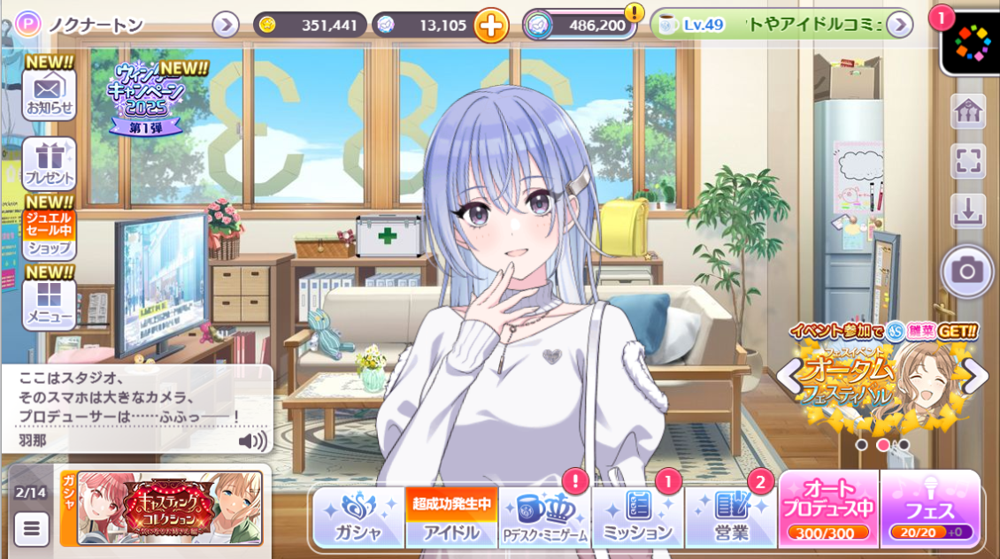あと一応、音ゲーはオート・スキップ機能があり、実際に2分くらいの音ゲーを演奏しなくても、プレイしたことにできます。手早くデイリーミッションをこなしたいときや、スタミナがあふれてしまった時などに便利です。