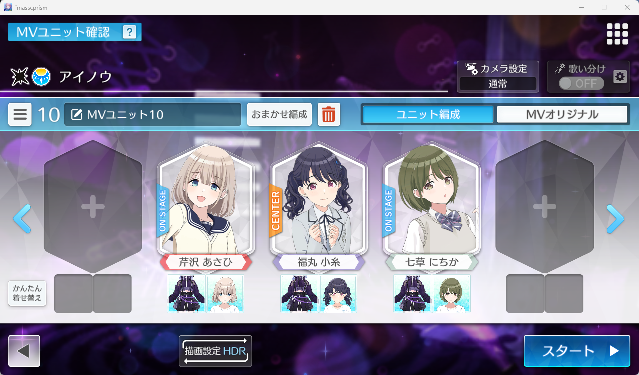 さて、衣装の話が出たのでこのゲームを神ゲーたらしめている衣装とMVユニット、そしてドレスオーダーの話をしていきましょう。