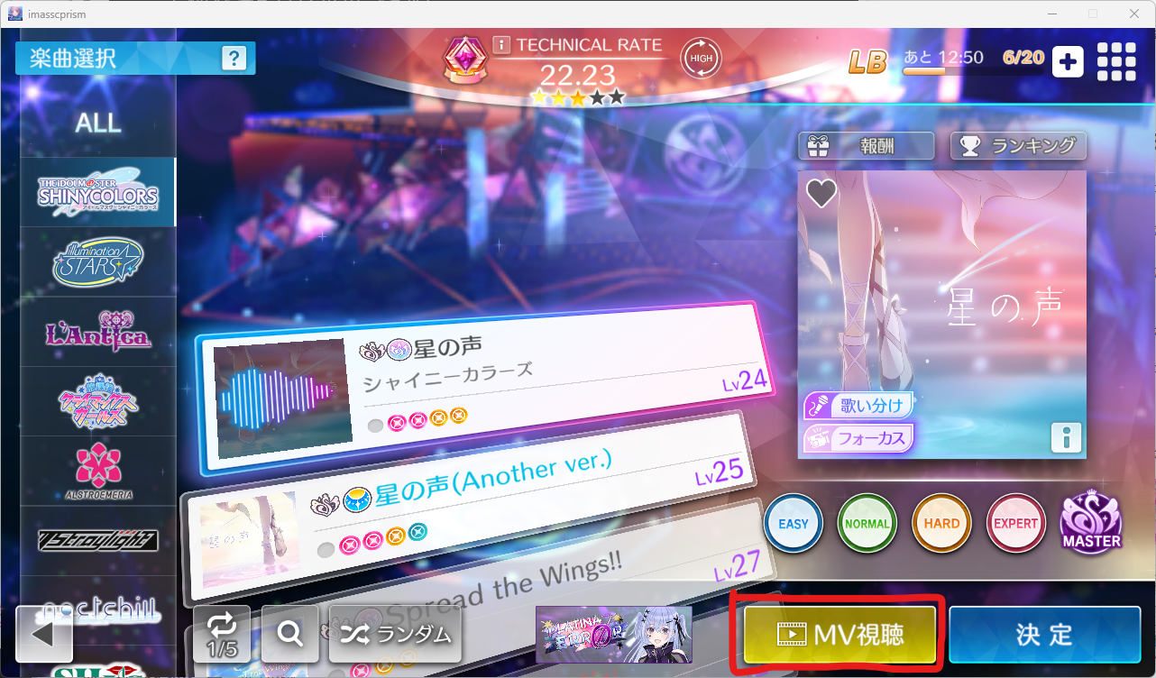 シャニソンでは一つの楽曲に対して5つの難易度の譜面が用意されており、下2つは音ゲー初心者でも簡単にクリアできる難易度に調整されています。