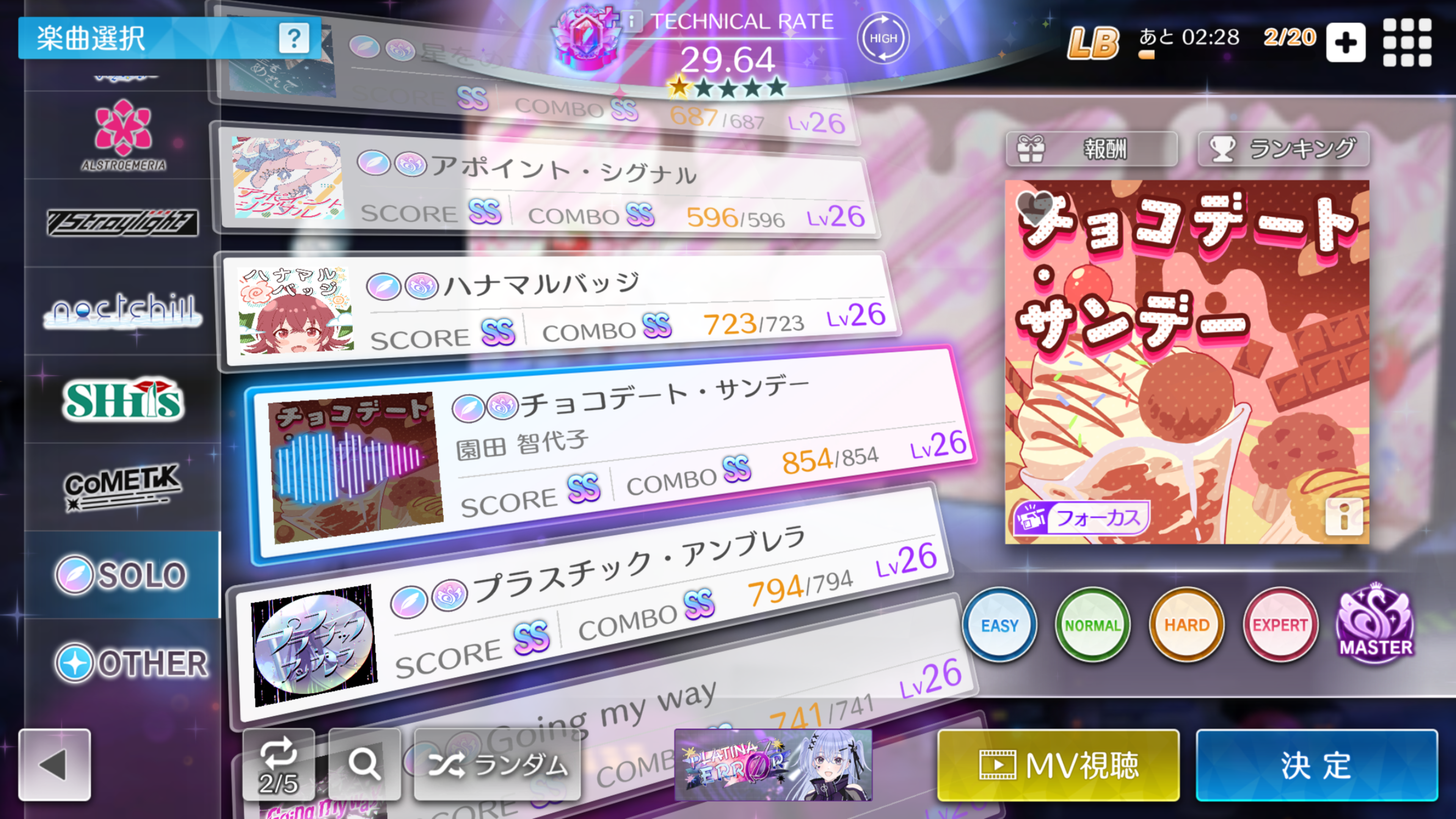 テクニカルレートは、キャラの編成には影響されず、プレイの上手さによってのみ決まるレートです。総合テクニカルレートは、テクニカルレート上位20曲の平均で算出されます。合計ではなく平均です。