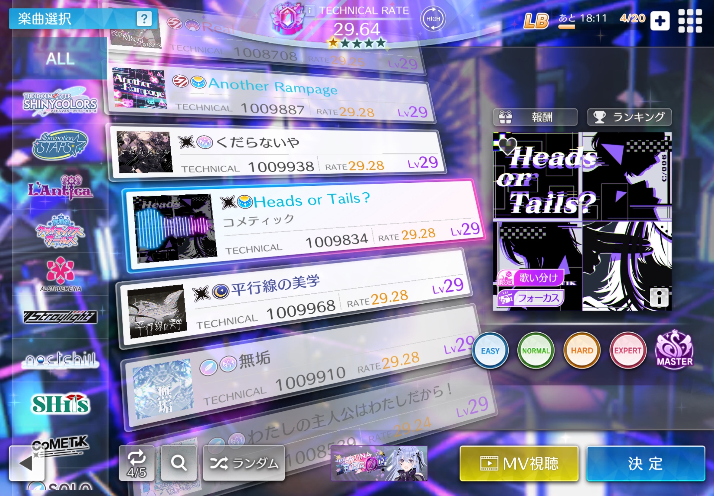 100万点をとるとその譜面のテクニカルレートは、その譜面のレベル表記と同じになります。例えばLv.29の譜面で100万点を取ったら、その譜面のテクニカルレートは29.00。