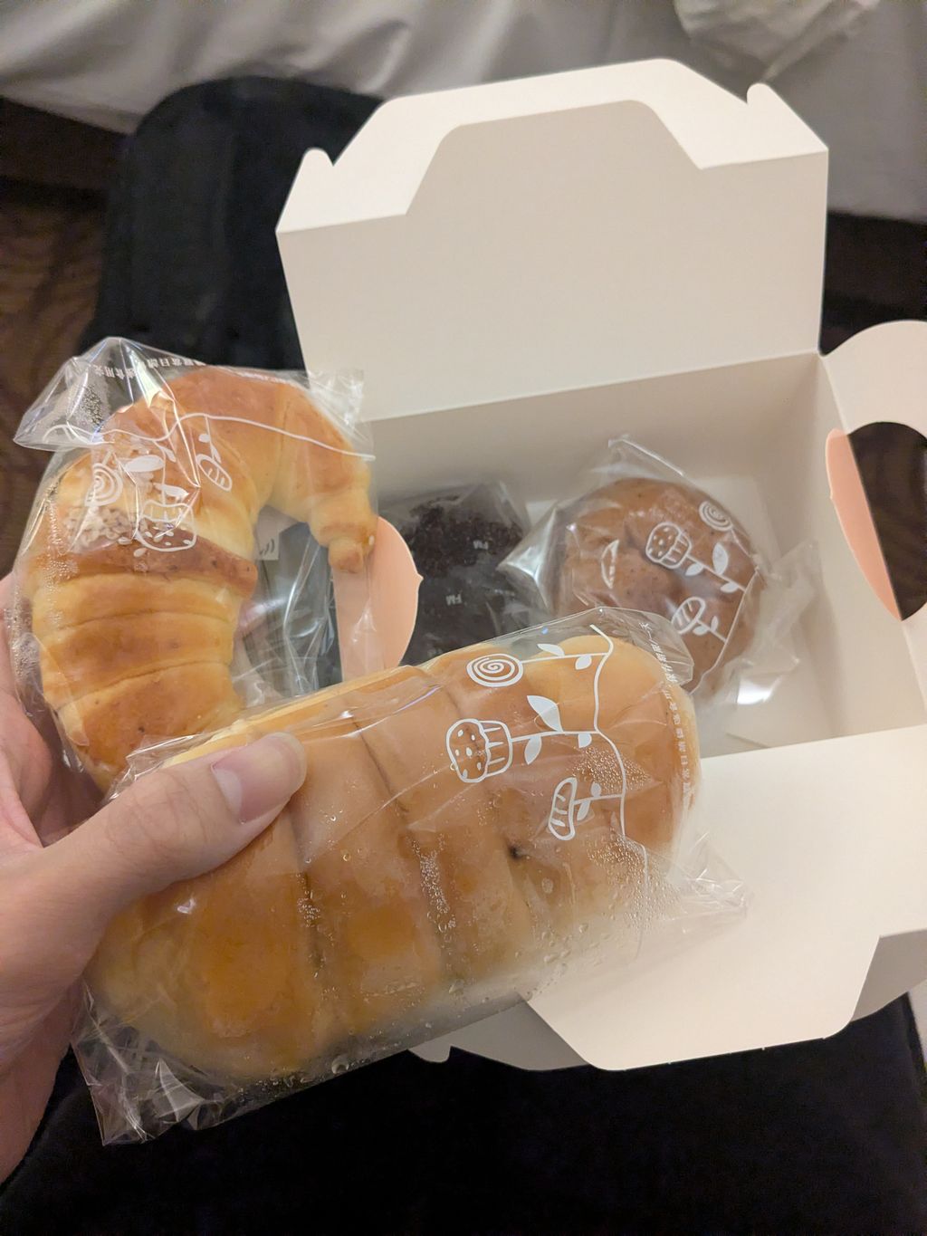 その日もRunch Box (パン x 4) をもらってホテルに戻ります。北大のwinterさんが夜市回ろう〜と呼んでくれたので行きました。宮原眼科 (病院ではない) でアイスを食べたり、なんかでかい公園を見たり、北大のはとさんとjupiterと臭豆腐を食べたりしました。