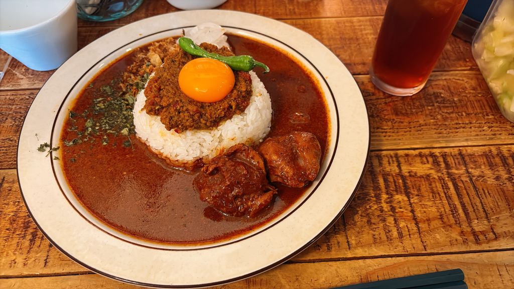 写真はあいがけカレー(1500円)で、コトコト煮込まれたお肉の味と、鼻を突き抜けるスパイスの香りが最高です。