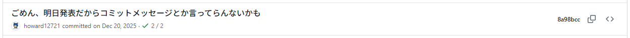 そのあとはdemeterをAIに書かせるという仕事をしていました。フロントをほぼ書いたことがなかったので、AIの仕事を見ながら勉強していました。AIってすごいですね。ただデザインがAIぽいとほかのメンバーに突っ込まれました:gomen: