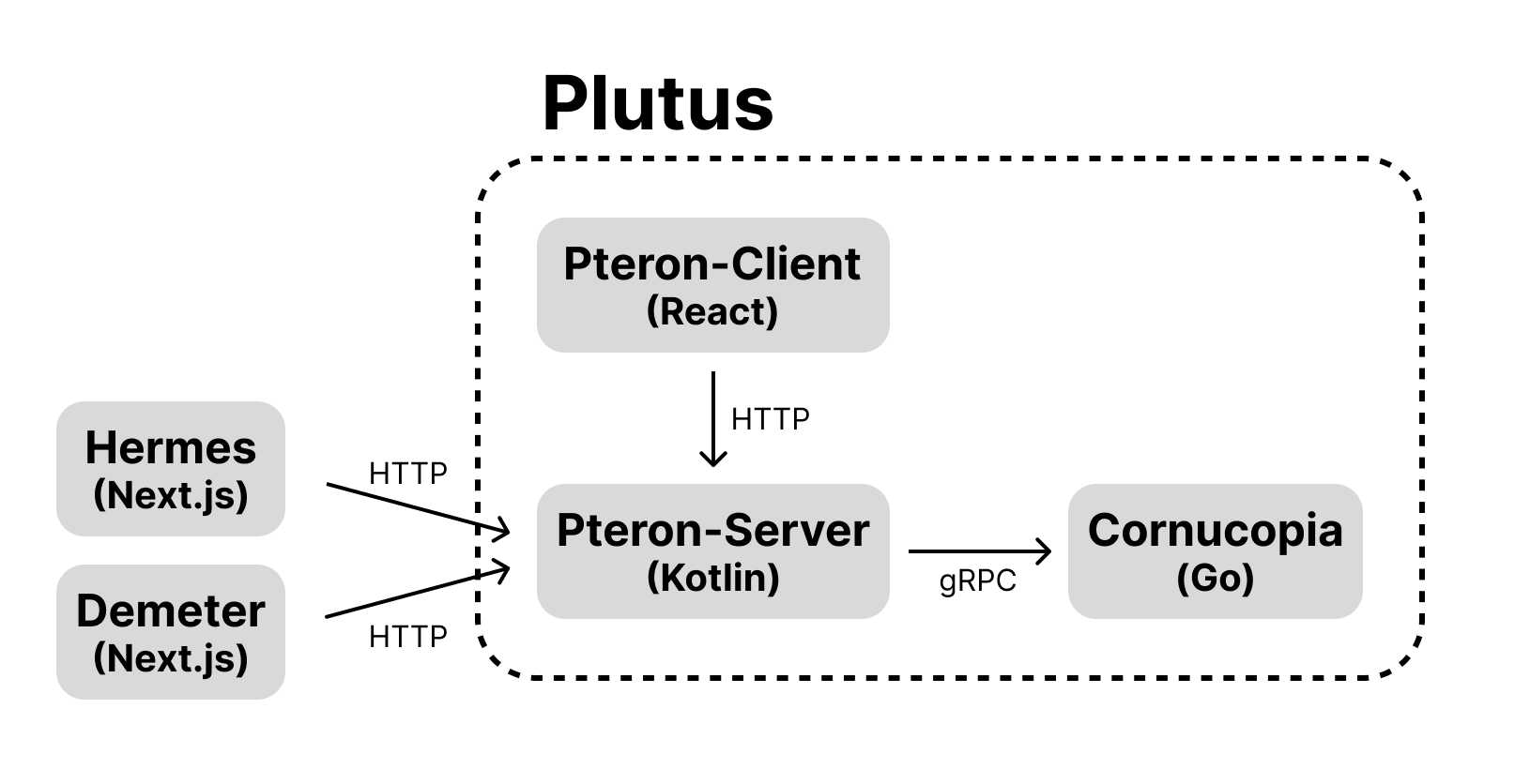 cornūcōpiae (Cornucopia) は Go で作られており、πτερόν (Pteron) と gRPC により通信を行います。