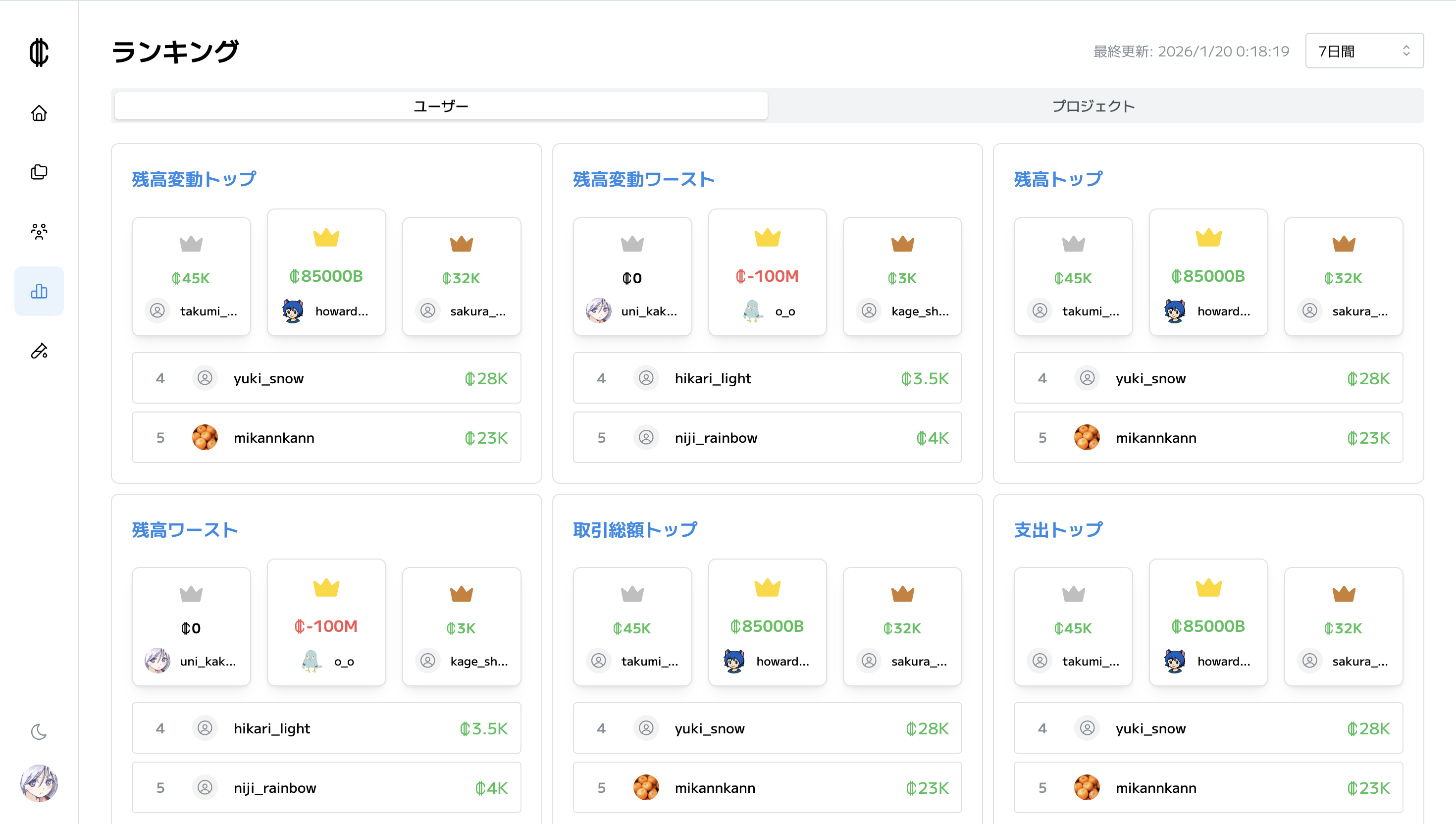 プロジェクトが保有するポイント残高をトップページに表示