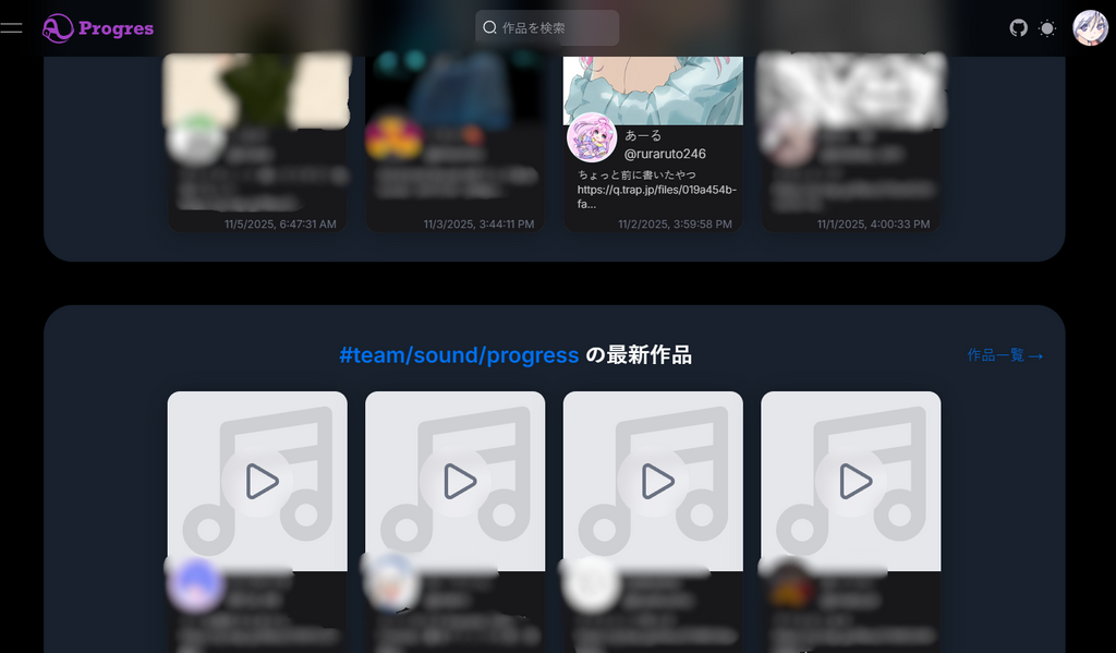 しかしながらチャットツールという性質上、作品共有の場として捉えたときの一覧性や検索性にはやや難があります。これをどうにかして解決できないかという思いの元、我々の班としては、traQ へ投稿された作品と、その付加情報や他者の反応とを線で結びつけられるような、網羅的な 作品 検索・レビュー サービス の制作を試みました。