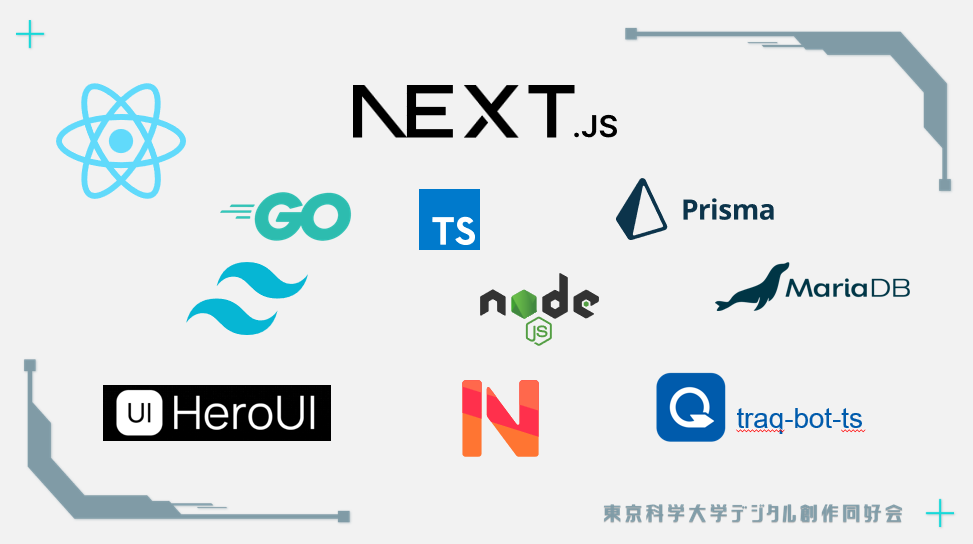 正直フロントエンドが人員不足になることは目に見えていたので、全員をフロントエンドエンジニアに仕立てるつもりで準備していました (結構な分量のチュートリアルを嫌がらずに走ってくれたみんなに大感謝)。Go + Vue.js がデファクトスタンダードになっている traP においてかなり異質な構成であることは否めませんが、これは単に逆張りをしたかったというわけではなく、開発期間とメンバーの特性などを鑑みた結果、Next.js に手を出してみるのも手だろうとある程度合理的に意思決定を進めたつもりです。振り返ってみても真面目にサーバーつくっている時間はなかったので良い判断だったかな、と思っています。
