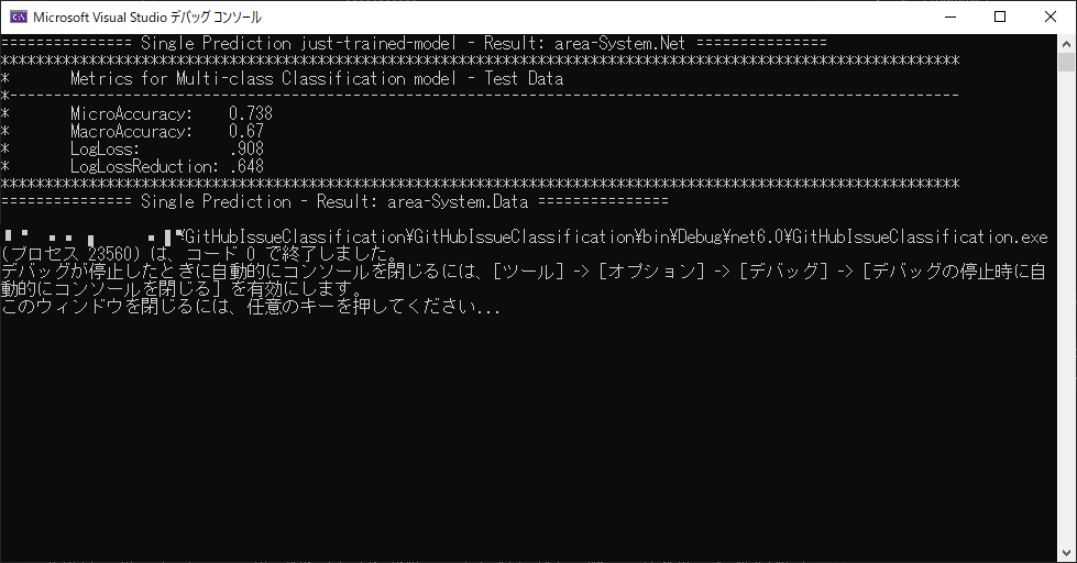 PredictionEngine<SosekiSentence, SosekiPrediction> predictionEngine = mlContext.Model.CreatePredictionEngine<SosekiSentence, SosekiPrediction>(trainedModel);