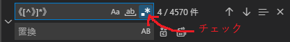 次に、検索ボックスの中に[[^]]*]と入力してください。