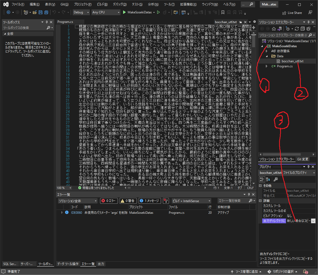 この文章に関しては、青空文庫さまのデータを使います。