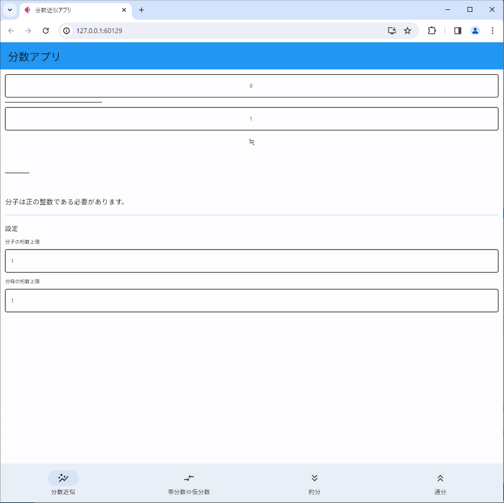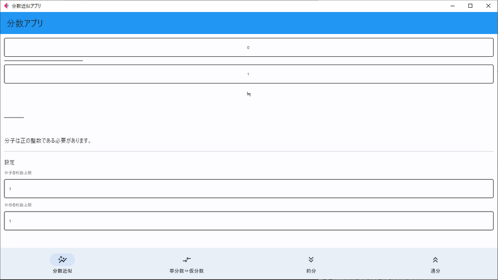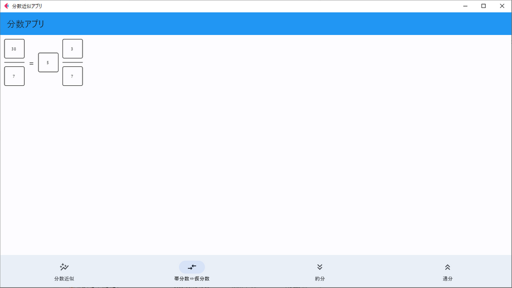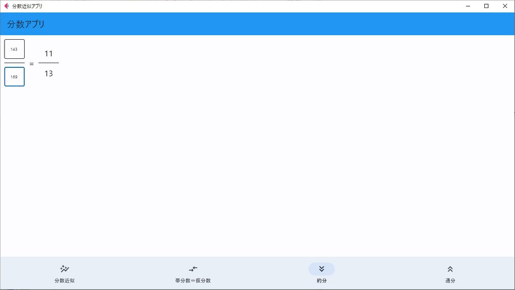 とはいえ、ここではとりあえず小数部分を表す分数を取得するために、アプリの機能の一つとして実装しました。