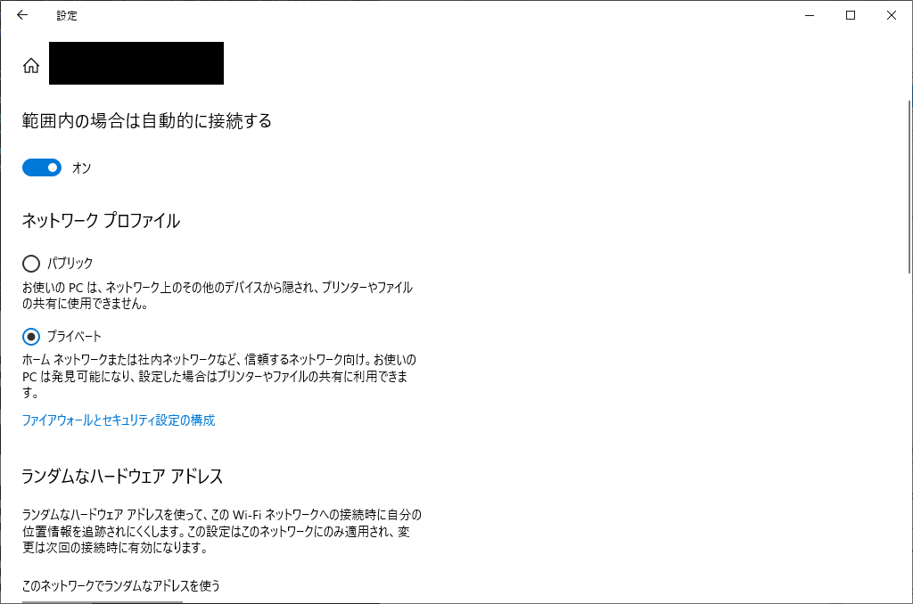 このときは、接続しているWi-Fiのネットワークプロファイルを、「プライベート」にするとうまく行くことがあります。