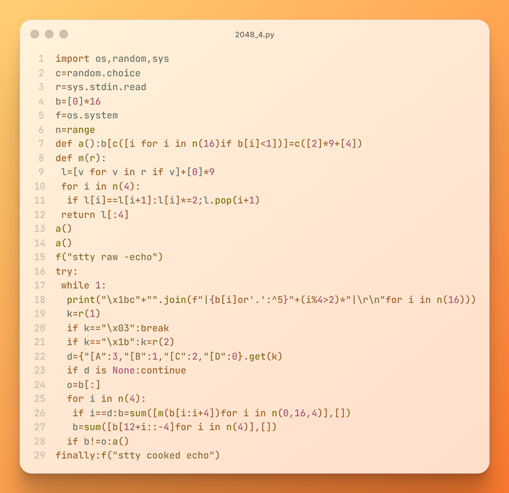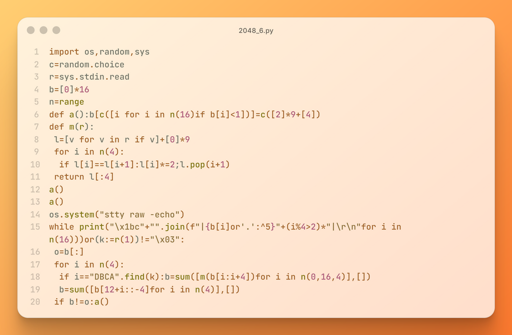 この2048をもっと短く書けた!という方も任意の手段で教えてください!お願いします。