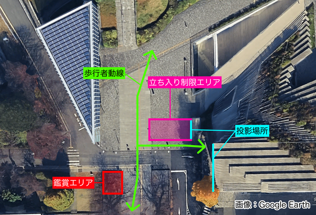 映像を正面から最も綺麗にご覧いただける 「鑑賞エリア」 を設けております。迫力ある映像表現をぜひベストポジションからお楽しみください。