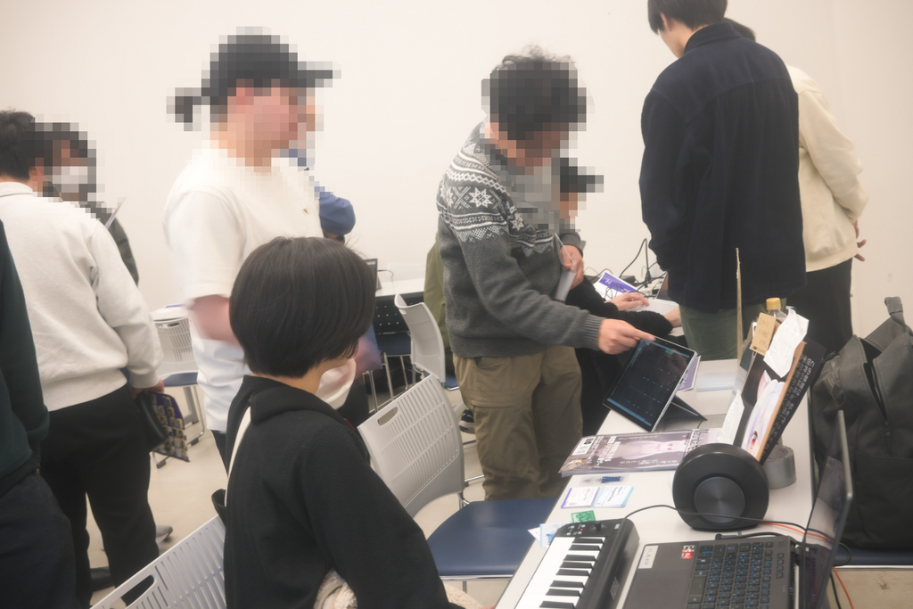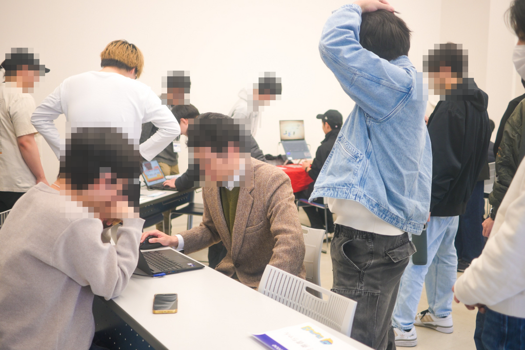 ゲームを展示する人がブースに分かれて展示を行い、参加者からゲームの感想を聞いたり、展示者に質問したりできます。
