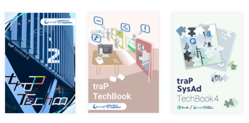 traPは技術に関するトピックをオムニバス形式でまとめた「(SysAd) TechBook」や,イラストの画集,自作曲を収録したCDを数か月ごとに発行しています.