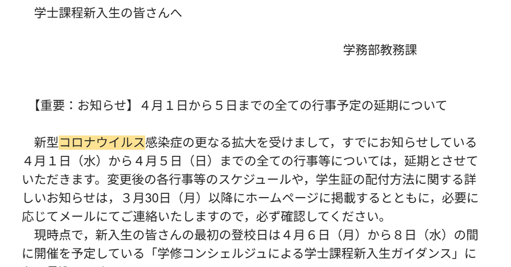 新型コロナウイルスの流行。入学式・バスゼミ・花道,あらゆる催しものは中止となるかオンラインに置き換えられ、2020年度の新入生は自宅で過ごす日々が続きました。