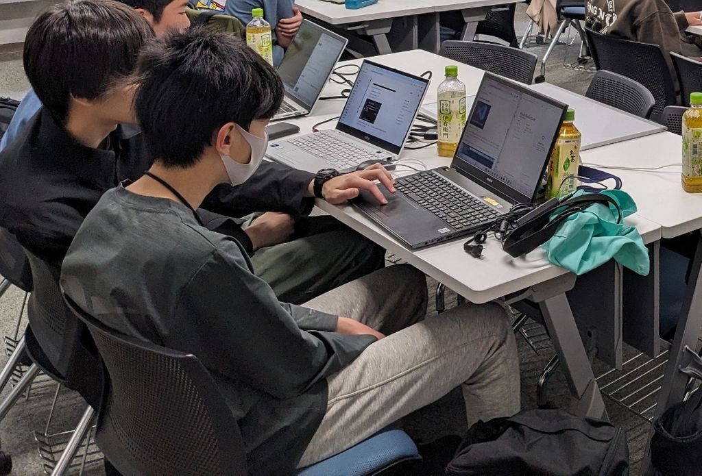 司会による全体の説明ののち、各グループに分かれてプログラミングを始めました。