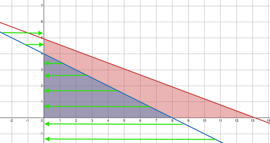 座標が最も大きい点は であるので、 として、直線を だけ 軸正方向に平行移動すればいいことになる。これにより、直線の方程式は になる。この操作によって、最大値は だけ減少してしまうため、代わりに に を加算する。