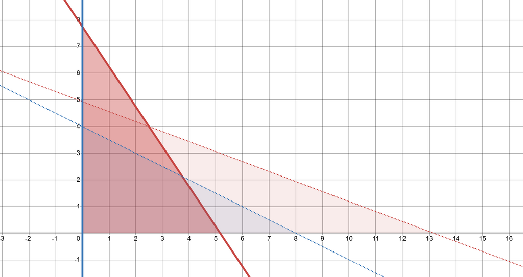 線形計画法の解法として、「端の点を試す」という手法がありますが、今回もそれは有効です。まず、 座標が負の点を考える必要をなくすために、 座標が である場合を試します。