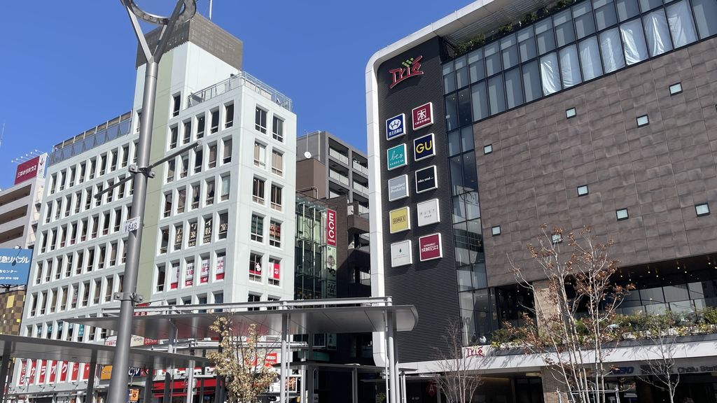 さて、歩き進めていくと大きなビルの背面が。そのビルの脇を抜けていくと、4つ目の特急停車駅 調布 に到着です。