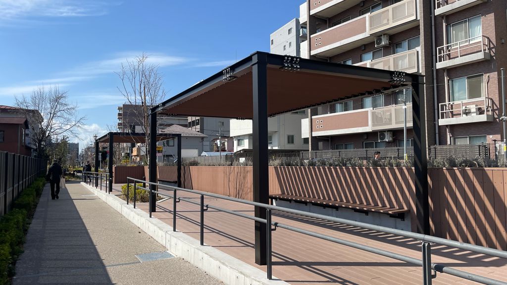 もう15年ほど経つとはいえ、地下化された区間の駅舎や駅前には新しさを感じます。先述した通り、国領から調布の区間は遊歩道になっており、また駅間によってそのコンセプトがさまざまにある様子。