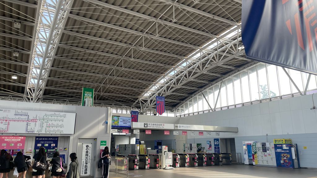 大きな屋根と吹き抜けがあり、さながら大ターミナル駅の様相を呈する飛田給駅ですが、平時は区間急行以上の種別は全通過。ただ、近隣に味の素スタジアムや京王アリーナ等、スポーツ/イベント施設が複数立地していることから、広いコンコースが設置されているといった駅になります。大型イベントや試合の時には、最速種別である特急も臨時停車し、さぞ多くのお客さんで賑わうことでしょう。