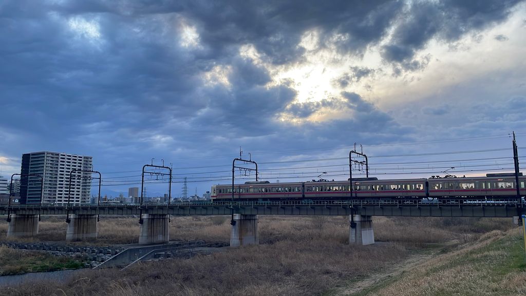 雲が少し出てきてしまいましたが、時間帯はいい感じの夕刻。多摩川に映える線路と聖蹟の街並みが、さぞ秀麗に見られることでしょう。