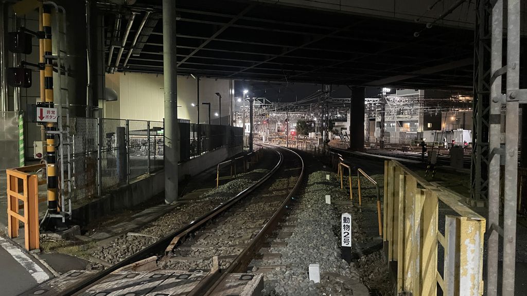 とここで、ちょっと道を逸れて南側へ。少し歩くと駅のホームが見えてくるのですが、どうやら終点駅の様子。