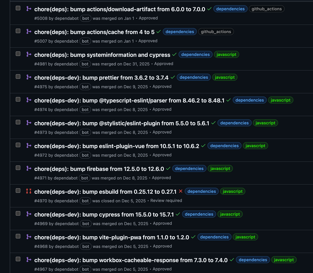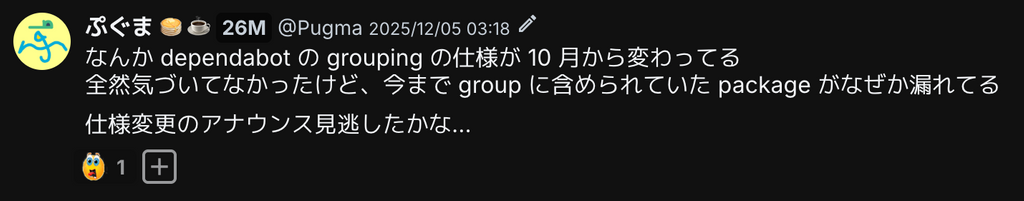 いつものことのように Dependabot からの Pull Request を消化していたときに、異変に気づきます